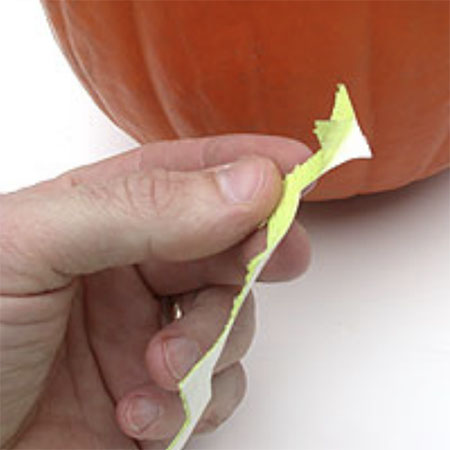 - Once you have traced all of the pieces onto the tape, use your scissors to cut out the pieces that will go on your pumpkin.