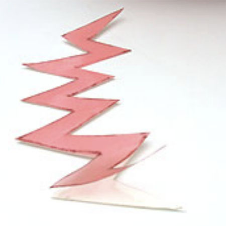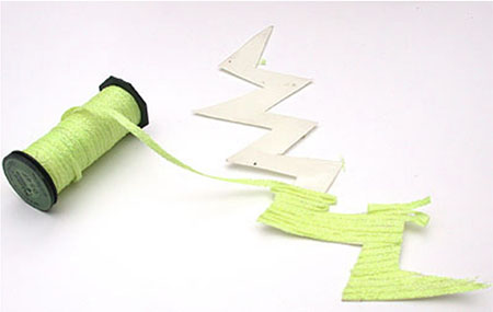 - Attach the 1/8" Ribbon at one of the corners of the mouth piece and press the 1/8" Ribbon in place so that it will extend just beyond the edge of the tapped piece. Using a zig-zag pattern, continue pressing the ribbon into place so that each piece of ribbon is butted against the previous piece to "fill" in the tape.