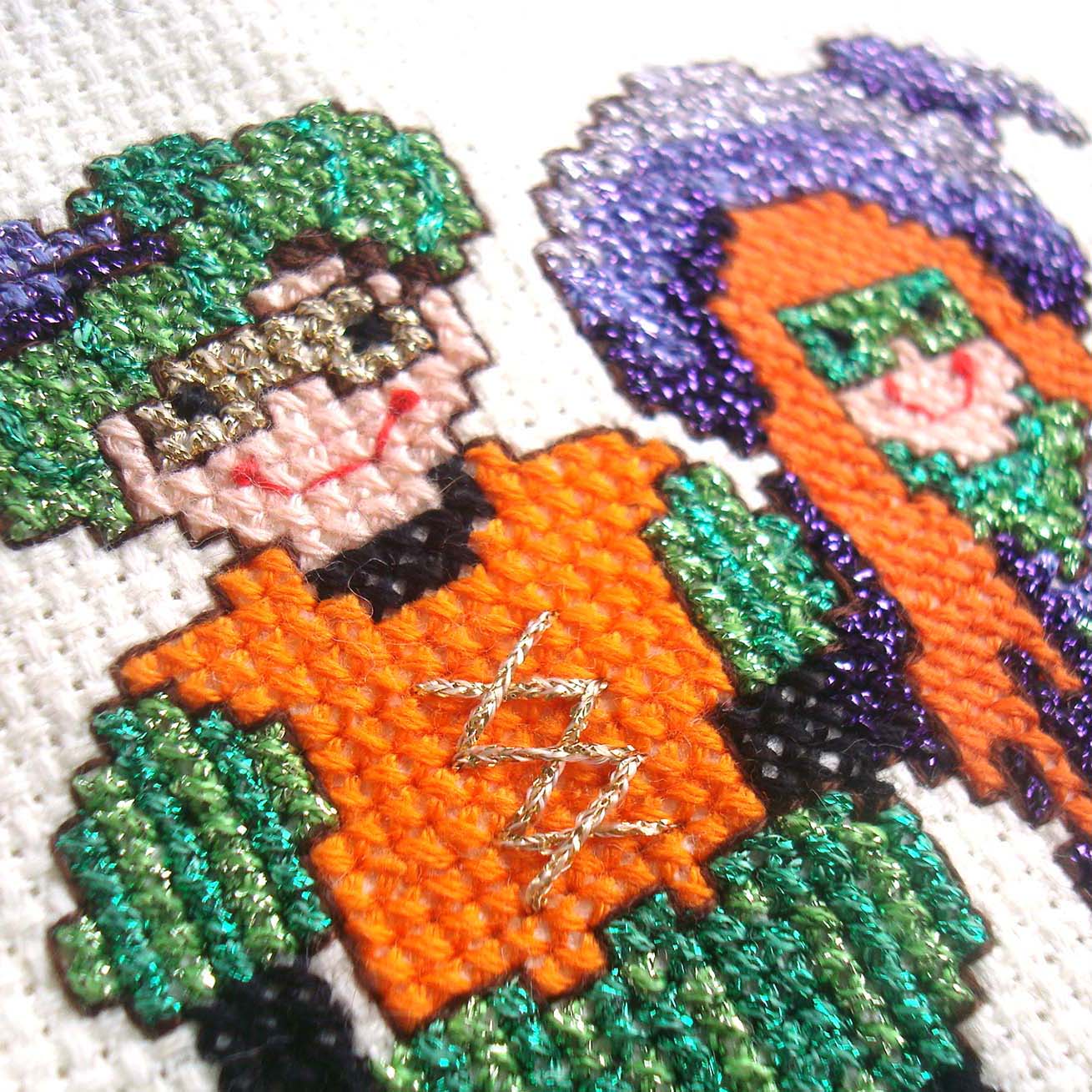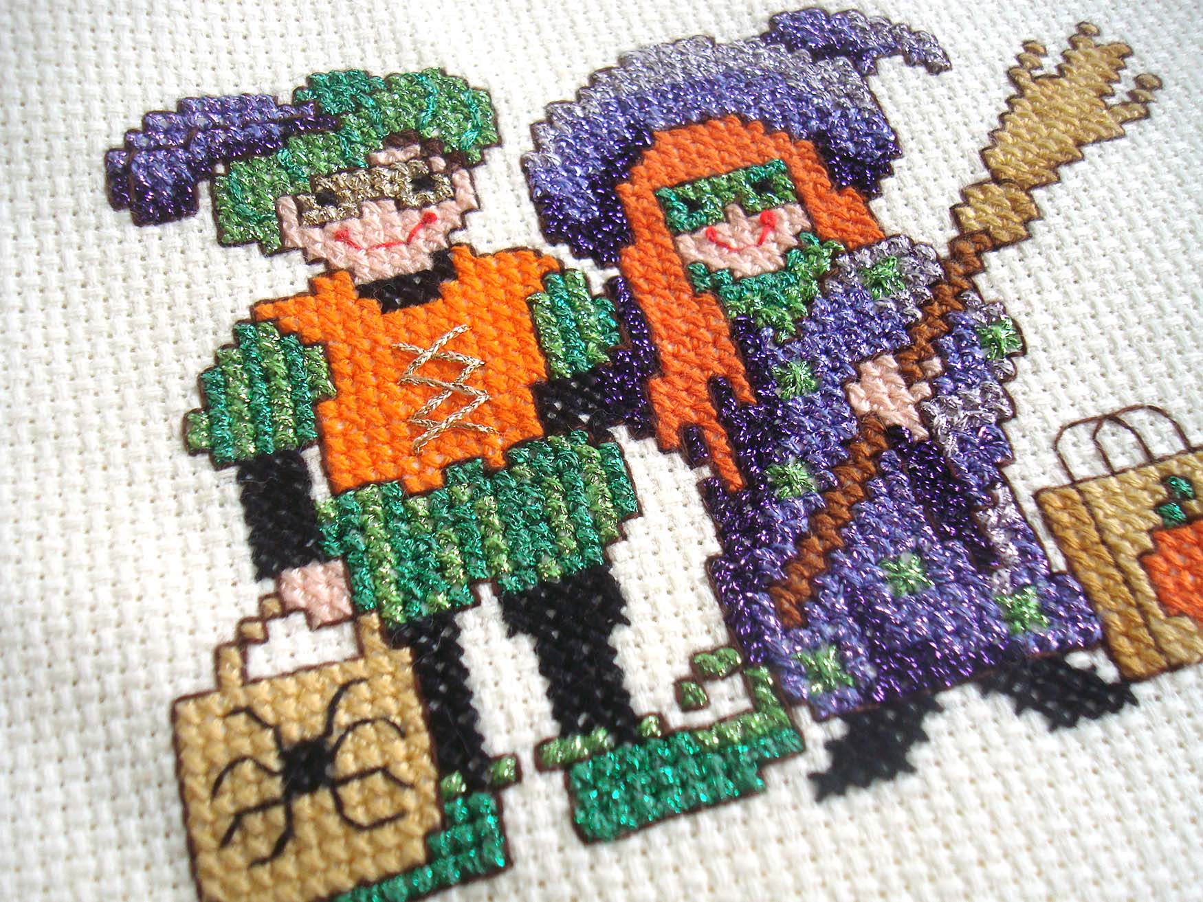 A quick-and-easy cross stitch design for Halloween (what a sweet little duo all dressed up for trick-or-treating!)